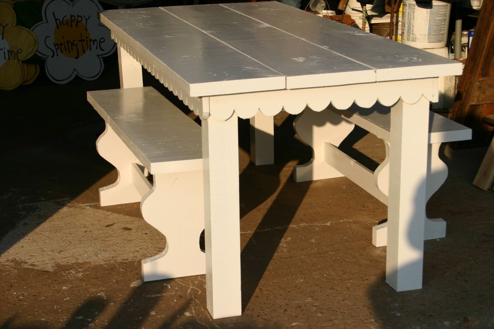 We have been busy working in our warehouse to get things ready for Saturday. Jay made me this great picnic table and benches. I can't wait to get it in the store and all dressed up for the weekend since I still have picnics on the brain!